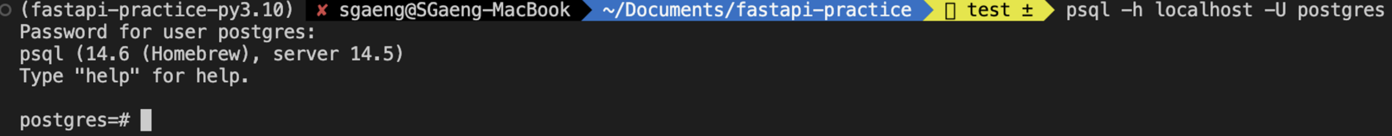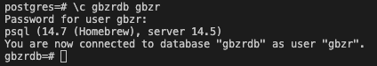 $ psql -h localhost -U <username> -d <dbname>