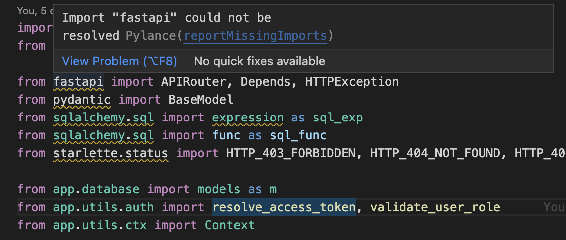 ์๋ ์ด๋ฏธ์ง์ฒ๋ผ import fastapi โฌ ๏ธ ์ warning ๋์ด์๊ณ ,