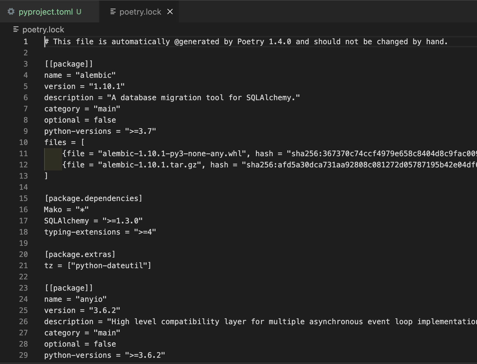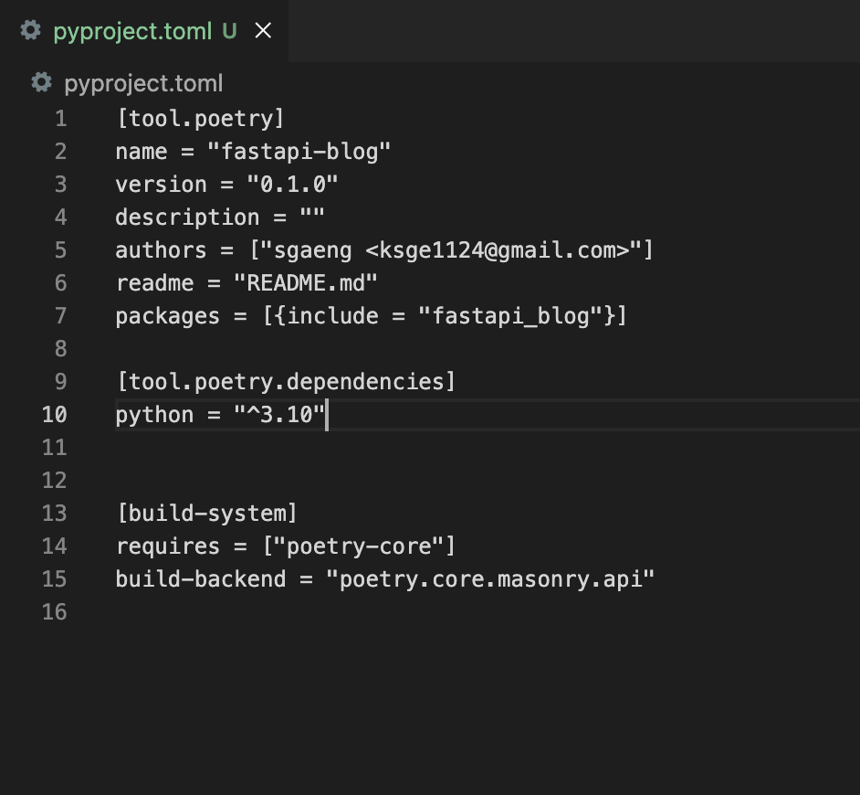 Poetry๋ 'pyproject.toml' ํ์ผ์ ํตํด ํ๋ก์ ํธ์ ์์กด์ฑ ์ ๋ณด๋ฅผ ๊ด๋ฆฌํ๋ค.