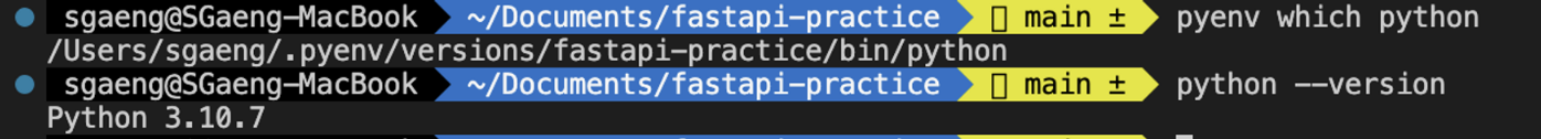 2-1. ๋ง๋ค์ด์ง ๊ฐ์ํ๊ฒฝ์ ํ์ด์ฌ (๋ฒ์ ์ด ์๋ ์์น) ํ์ธํ๊ธฐ: $ pyenv which python