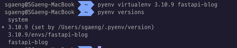 2๏ธโฃ pyenv-virtualenv ์ด์ฉํด์ ๊ฐ์ ํ๊ฒฝ ์์ฑ