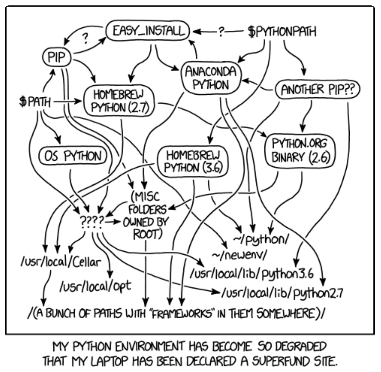 - (์ด์ , ์ฉ๋์ ๊ตฌ๋ถ) pyenv๊ฐ Python ๋ฒ์ ์ ๋ฐ๊ฟ์ฃผ๊ธฐ ์ํ ์ฉ๋๋ผ๋ฉด, pyenv-virtualenv๋ ๊ฐ์ํ๊ฒฝ์ ํจํค์ง์ ๋ฒ์ ๋ ํจ๊ป ๋ฐ๊ฟ์ฃผ๊ธฐ ์ํ ์ฉ๋ ์ด๋ค.